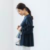 フリルを挟み込んだドラマチックなパフスリーブが印象的なチュニックブラウス。