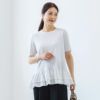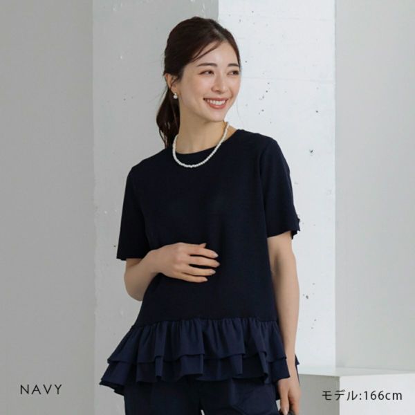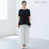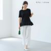 布帛ペプラムのアイコニックな表情はもちろん一枚着としてワンツーコーデでも華やかさを演出します。