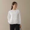 清楚なフリルが目を惹くブラウスは、軽やかな羽織りとしても活躍。