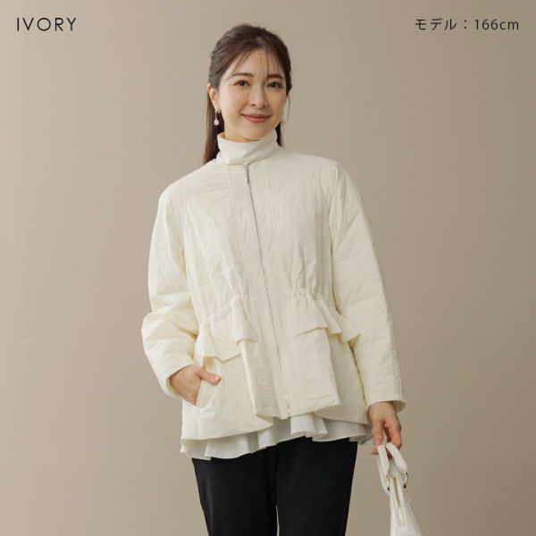 ちょうど良くサラリと羽織れる中綿入りアウターです。
