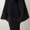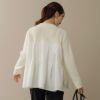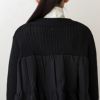 ハンカチヘムのショート丈ニットをダブルクロスのタックギャザーフレアヘムに重ねたレイヤード風シルエット。