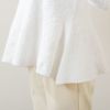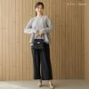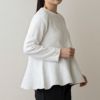 裾に向かって広がるペプラムシルエットが、気になる腰まわりをさりげなくカバーし、華やかな印象に導きます。