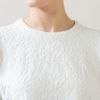 きらきらした光沢のモール糸とハイパーストレッチ糸を組み合わせた立体感のあるジャカード編みが上品な表情を生むニットプルオーバーです。