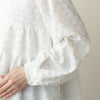 ふんわり広がるティアードシルエットと立体感のあるツッキリドットジャカードが視線を惹きつけるブラウスです。