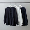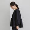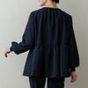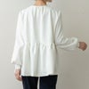 ボディラインを拾いにくいシルエットで、スカラップ状に切り替えたウエストギャザーがふんわりと立体的なシルエットを生み出します。