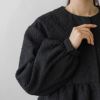 上品な光沢のある膨れジャカード素材を使用しブラウス感覚でサラリと羽織れる中綿入り春アウターをつくりました。