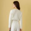 上品な光沢できちんと感のある総針編みにスポンジ性のあるストレッチ糸を全体に編み込むことでニットならではの快適な着心地と適度なハリ感を両立させ身体のラインを拾わず絶妙なサイズ感に仕上げました。