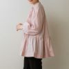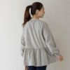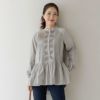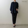 前身頃のタックを活かしたべプラムフレアシルエットが印象的なチュニックブラウスは、きちんと感がありながら、SONOらしいフェミニンシルエットが特徴です。