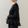 裾にあしらった布帛のミニティアードフリルがシンプルなニットに華やぎを添える一枚です。