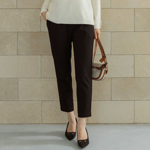 ほどよくゆとりのある腰まわりと裾にかけてすっきり細くなるテーパードシルエットがスマートなラインを演出します。