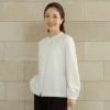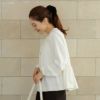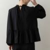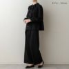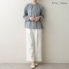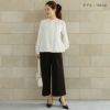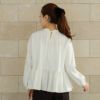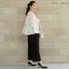 パール釦や後ろリボン、ふんわり広がるペプラムラインがほど良い甘さを添え、パンツを合わせるだけで大人のきれいめカジュアルが完成します。