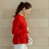 表情感がありながらもすっきりとした上身頃に、腰まわりでふんわり広がるギャザーフレアがポイント。