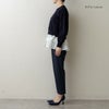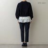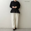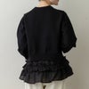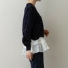 短丈ニットから覗く立体的でレイヤード見えするフリルヘムからは、歩くたびに軽やかなフロウ(=流れ)が生まれ、まるで花びらが舞うように華やか。