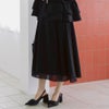 前はすっきり、後ろはほどよいギャザーで女性らしい動きを生む、軽やかフレアスカートです。