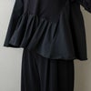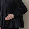 身頃脇と裾には布帛ペプラムをドッキングし、どこから見ても立体的なフレアを再現。