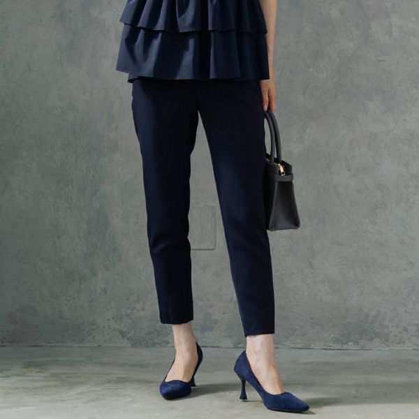 ウエストゴムをぐるり織り込んだ仕様はストレスフリーな着心地でありながら脚のかたちをひろわない、計算されたスリムテーパードシルエット。。
