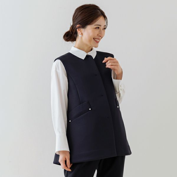 斜めに切り替えた箱ポケットや飾りパールが良いアクセントになっておりSONO NAVYとのコーディネートはもちろん、SONOのデザイントップスの上からでも安心してご着用していただけます。
