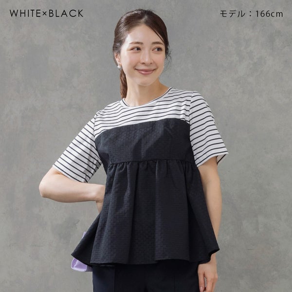 ウエストのギャザーとふんわり広がるペプラムデザインでスタイルアップ効果も抜群です。