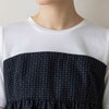 スーピマコットンをバイオシルケット加工し、シャープさと繊細さを共存させたカットソー素材と上品なジャカード素材を組み合わせ立体感のあるデザインに仕上げました。