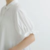 ふわりと広がるフレアシルエットが身体のラインを優しく包み込み、袖口のリボンがさりげない愛らしさを演出します。