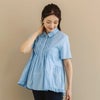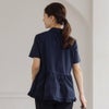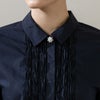 着用することで気分が上がるチアフルなタックギャザーフレアシルエットと職人による前立て横のダブルタックスモック刺繍モチーフが特徴のブラウスです。