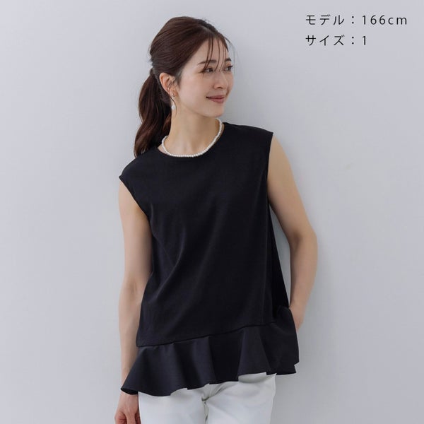 柔らかな揺れ感が美しいペプラムデザインのノースリーブTシャツです。
