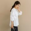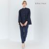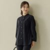 前立て横のスカラップモチーフがポイントできちんと感のあるフレアシルエットとティアード状のフレアスリーブが大人の女性らしさを演出します。