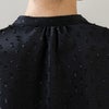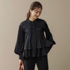 立体ティアードが華やかに揺れるブラウスを、艶やかなカットドビーサテンでアップデート。