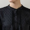 ほど良いボリューム袖やピンタック、バンドカラーなどのディテールで甘すぎずに上品に仕上げています。