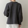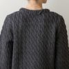 立体的なケーブル編みが上質感を引き立て、大人に似合う甘さとクラシックなムードを両立。