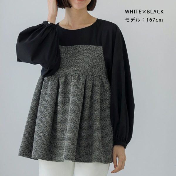 ツイードのビスチェをレイヤードしたような遊び心のあるチュニックブラウスです。
