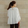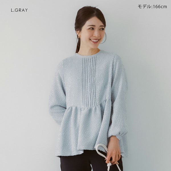 フロントに施したピンタックと、ふんわり広がるペプラムが織りなす立体的なシルエットは 歩くたびにやわらかな揺らぎを生み、さりげなく女性らしい余韻を残します。