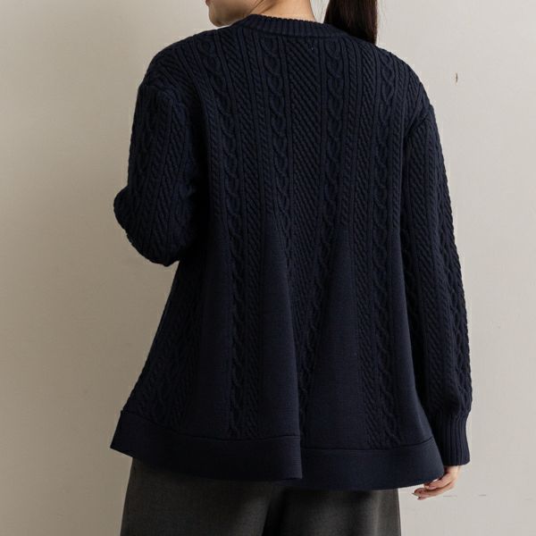 【洗えるニット】 【SONO】サークルフレアケーブルニットカーディガン