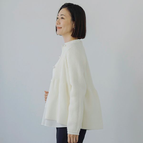 【洗えるニット】【エアフローウール】 【SONO】ダブルペプラムチュニックニットカーディガン【20251010】