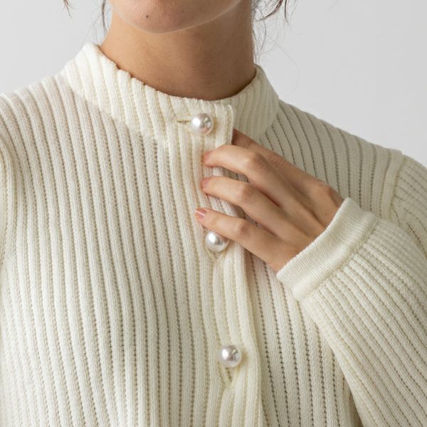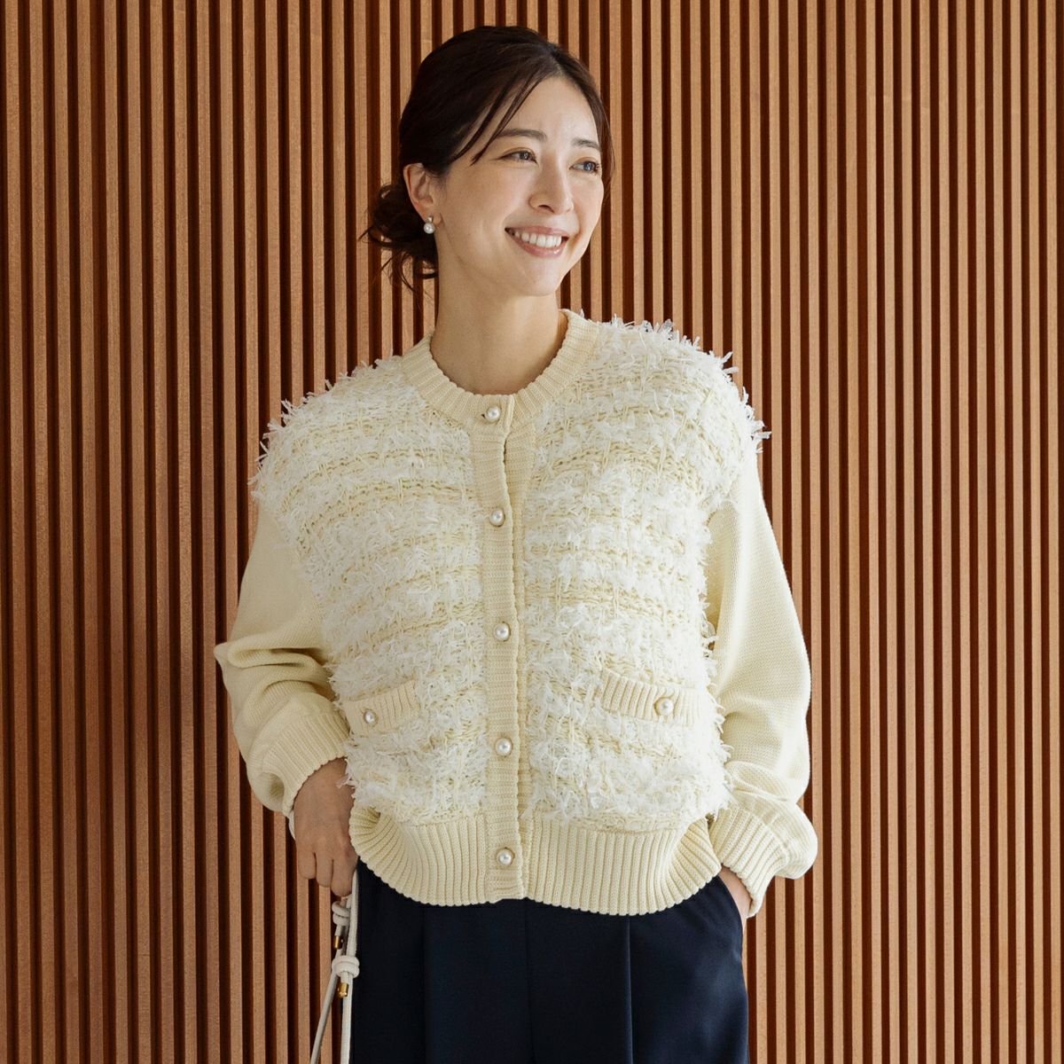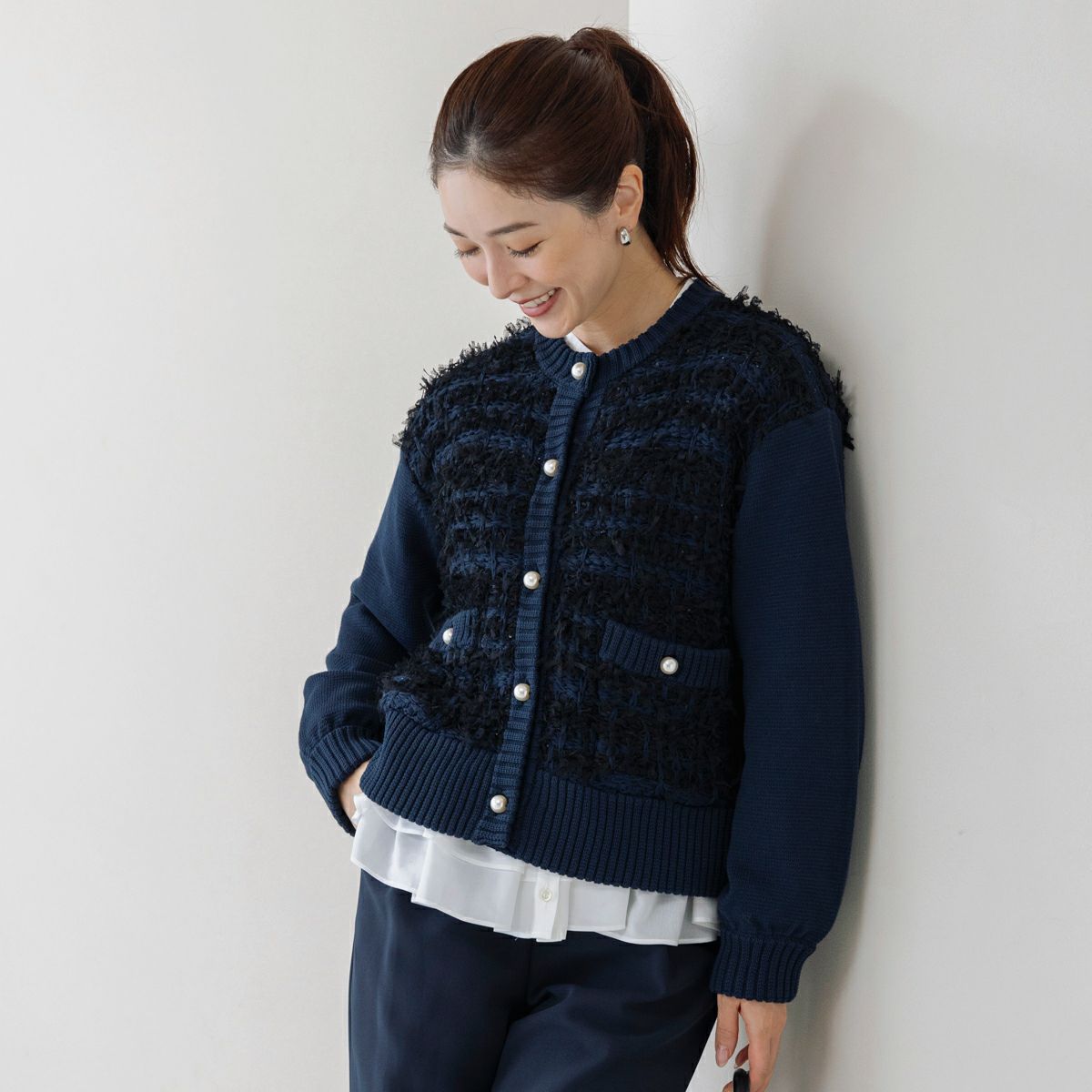 【洗えるニット】 【SONO】オーナメントパール3Dレイヤードニットカーディガン【20251003】