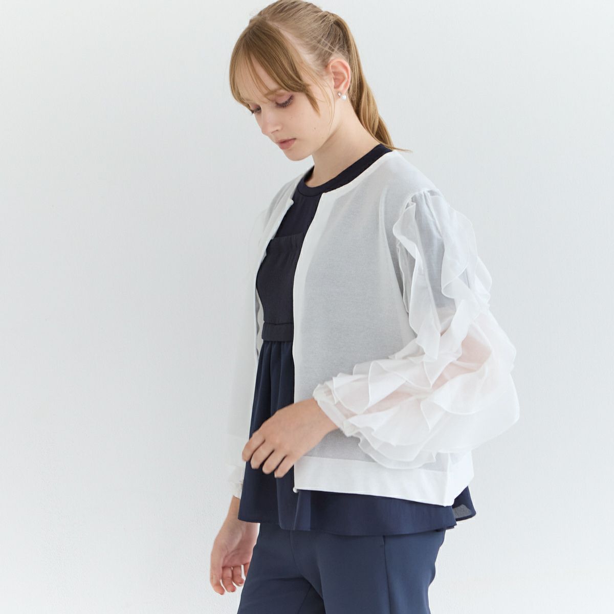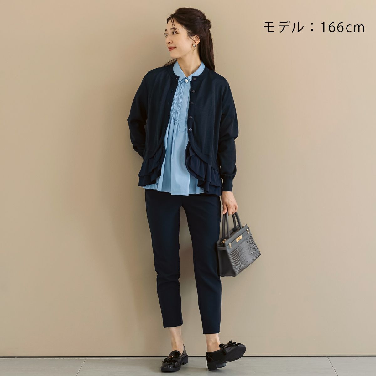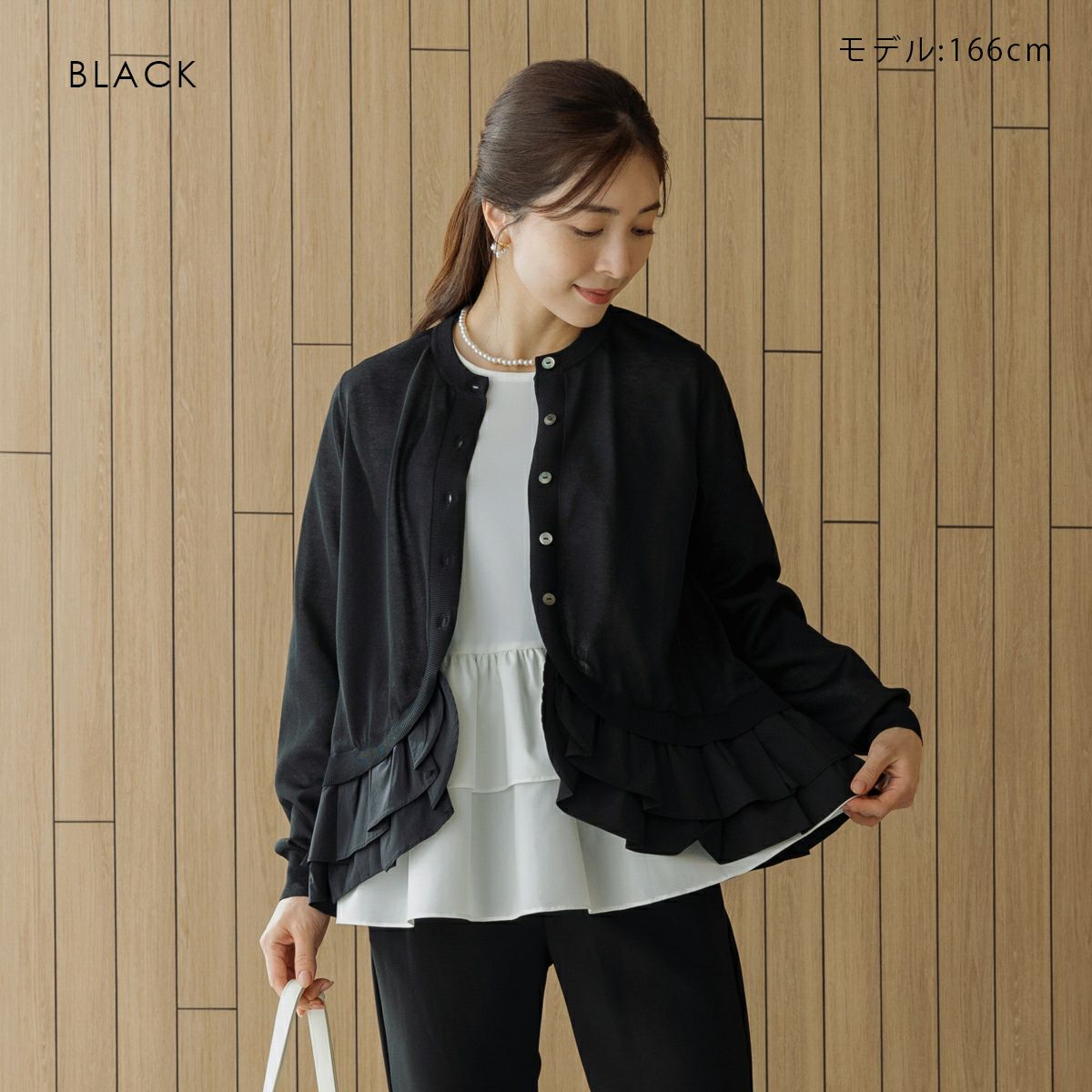【洗えるニット】 【SONO】エアフローコットン ラウンドフリルカーディガン【20250822】