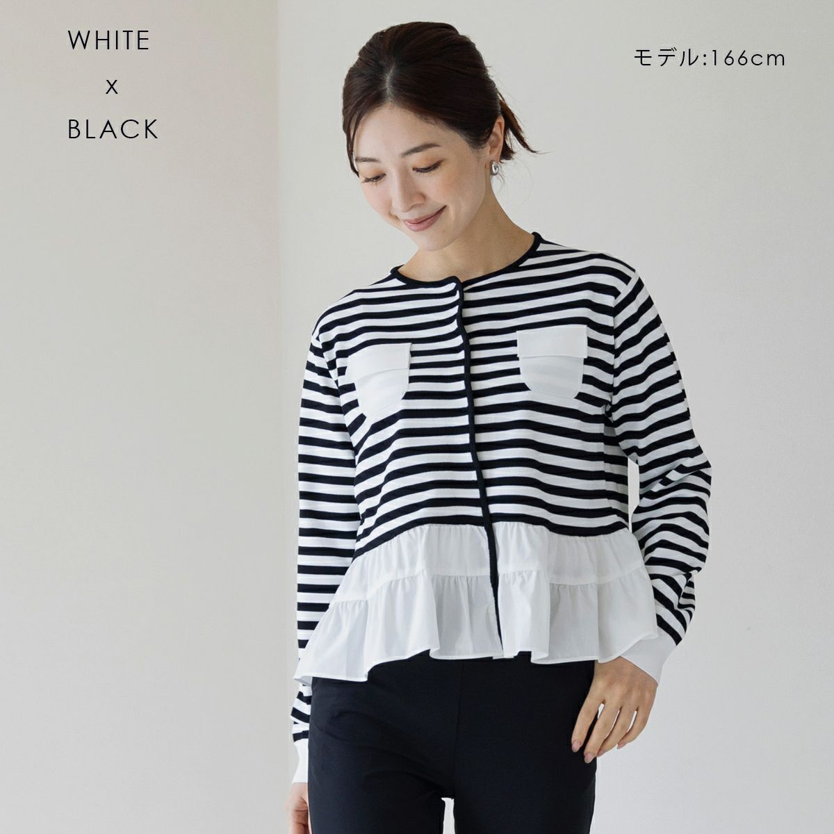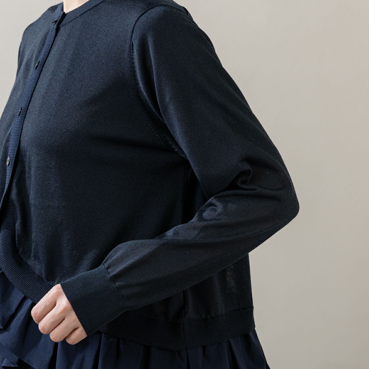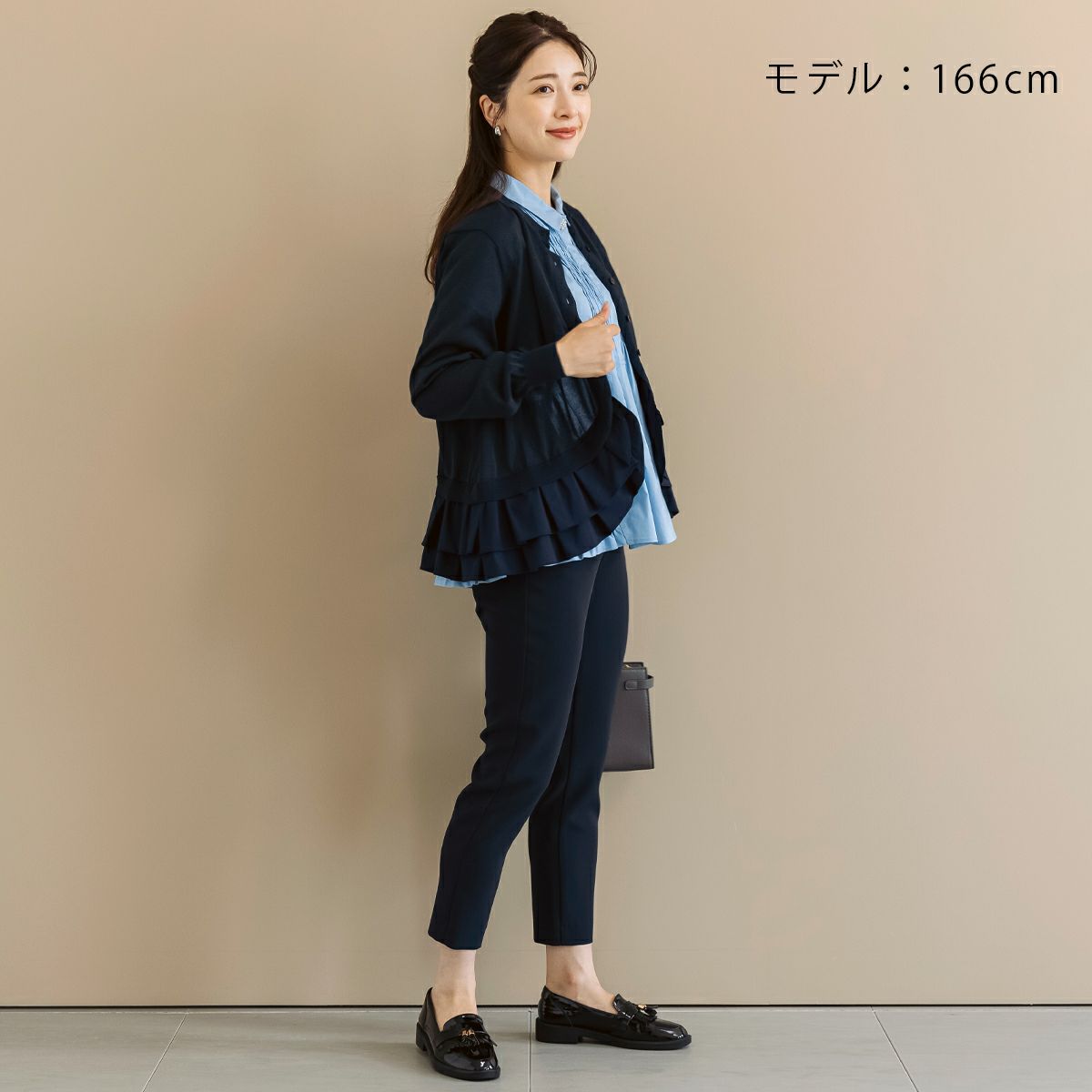 【洗えるニット】 【SONO】エアフローコットン ラウンドフリルカーディガン【20250822】
