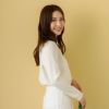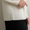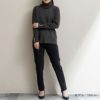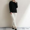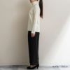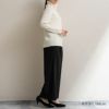 上品な光沢できちんと感のある総針編みにスポンジ性のあるストレッチ糸を全体に編み込むことでニットならではの快適な着心地と適度なハリ感を両立させ身体のラインを拾わず絶妙なサイズ感に仕上げました。