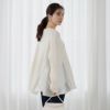 動くたびにふんわり揺れるサイドフリルが品のある甘さとさりげない華やぎを添えてくれる印象的な一枚です。