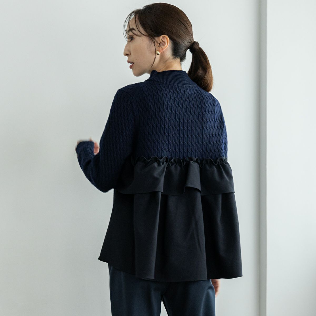 【SONO】バックフリルハイブリッドニットプルオーバー