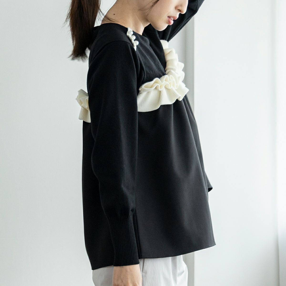 【SONO】チェストフリルハイブリッドニットプルオーバー
