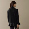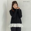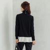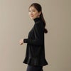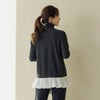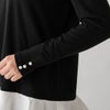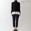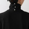 タートルネックがシックな印象を与え、袖口や後衿のパール釦が上品なアクセントになっています。
