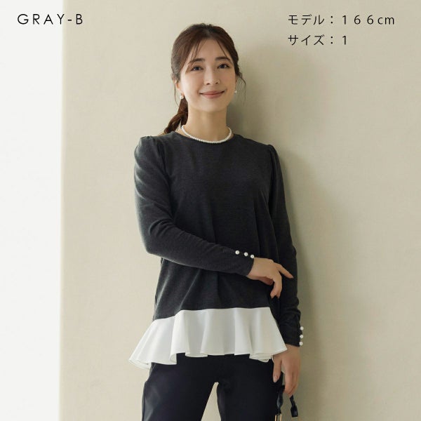 袖口や後衿のパール釦が上品なアクセントになっています。