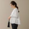 清楚なフリルが目を惹くブラウスは、軽やかな羽織りとしても活躍。