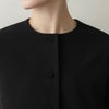 花びらのように重なり合う切り替えヘムが、動くたびにやわらかな表情を生むオケージョンジャケットです。