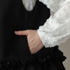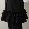 立体的なフリルは腰まわりをさりげなくカバーし、きちんと見えしながらも柔らかな印象を演出します。