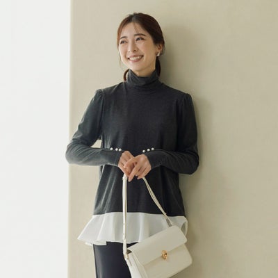 POP UPでは一度見送ったのですが、やっぱり欲しくなってオンラインで購入しました。 他にはない温かみ、柔らかさが虜になる素材で、パールや裾フリルがSONOらしくてお気に入りです。 160cm痩せ型で、サイズ1を購入。体型を拾わずちょうど良いです。