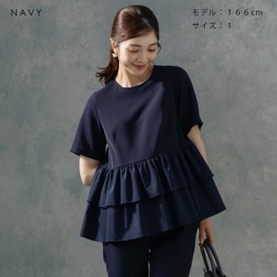体型が変わりサイズが大きくなったので法事の集まりやお盆の親戚集まり用に急遽購入。丈感、きちんと感、素材感、可愛らしさ全てバランス良しです。フリル部分がテカテカしすぎてないので、慶弔どちらでも使えます。仕事着にも良いです。強いて言うなら首周りをもう少しだけ緩めにしてもらえると脱ぎ気がしやすいです。 黒のアクティフパンツと合わせて履こうと思います。