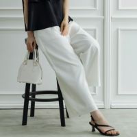 真夏の暑さでもまとわり付かず、どんなトップスにも合いスタイルアップしてくれるのでとても重宝しています。 普段マルチパンツはサイズ2ですが、こちらは1でスッキリ履けます。ブラックを買いましたが透け感があるので紺にも合います。でもやはり洗い替えも欲しいのでネイビーも買おうかなと思ってます! 追記 →やはりネイビーも買っちゃいました!ネイビーのトップスにはやはり相性が良いです。明るすぎず品の良い落ち着いた色味です。
