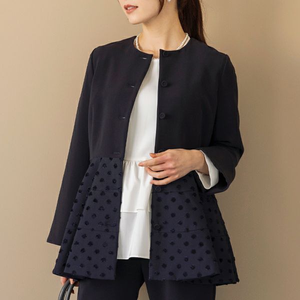 他の画像を見る 【MUMMUMダブルクロス】 【返品不可】【SONO NAVY】ティアードペプラムジャケット【20250117】【★】 ¥ 28,600 ¥ 28,600 税込 在庫切れ カートに入れる お気に入りに登録する